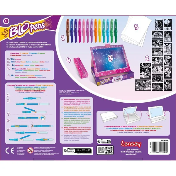 Transforme ta boîte en pupitre et grâce à tes Blopens et tes pochoirs, crée de sublimes dessins issus de l’univers des contes de fées ! Dès 5 ans