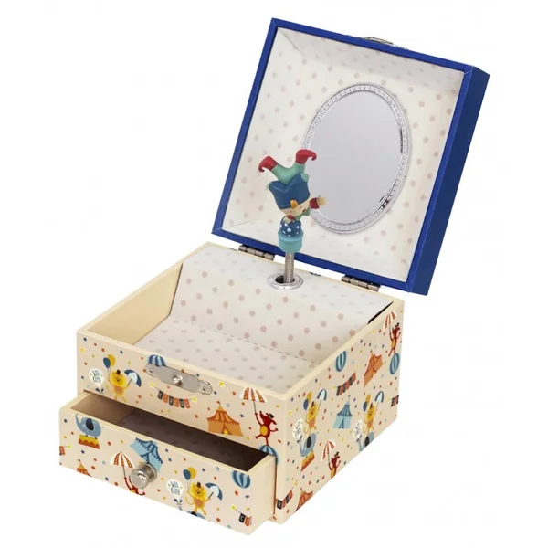 UNE BOÎTE MUSICALE POUR RANGER SES TRESORS : Cette boîte à musique en forme de cube et disposant d’un tiroir émerveillera l’enfant qui y rangera ses trésors. Actionnez la manivelle et la figurine Acrobate s’anime comme par magie au son de la musique !