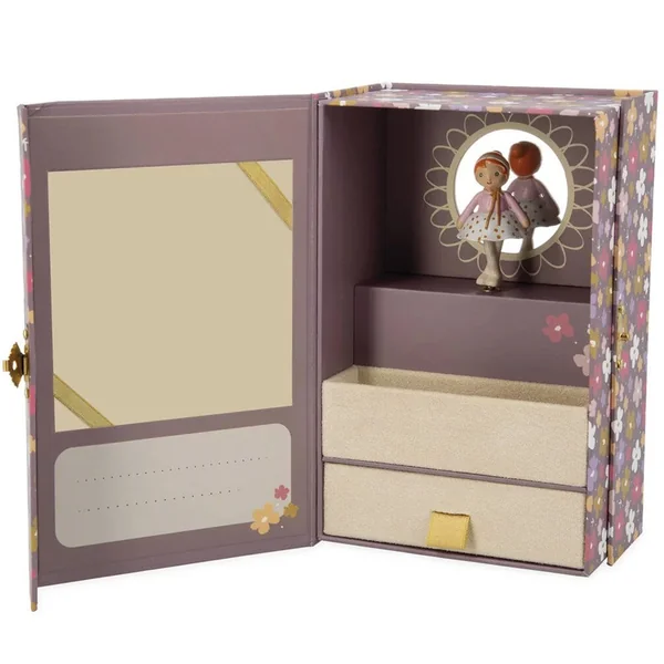 Un cadeau intemporel, à offrir en toute occasion pour un cadeau empreint d’affection. Composée de carton certifié ***, cette boîte à musique propose un petit tiroir en suédine, pour toujours plus de délicatesse.