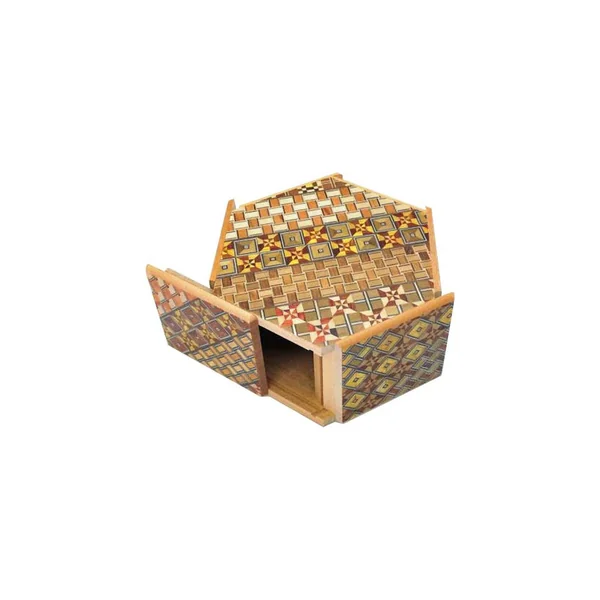 Himitsu Bako fabriquée en marqueterie de type Yosegi selon la technique traditionnelle de la région d’Akone.