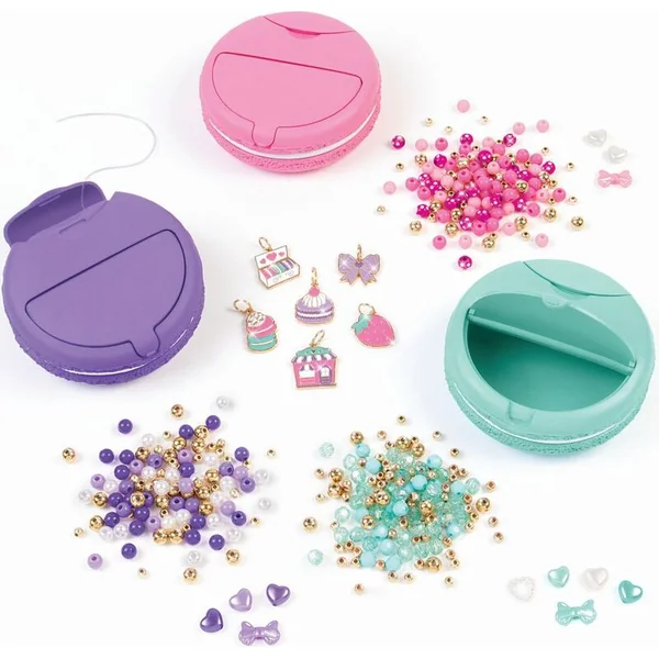 Il suffit de tirer sur le cordon, de l’enrouler autour du macaron pour un dosage précis, d’ouvrir le boîtier et de commencer à décorer avec des perles et des pendentifs sur le thème des desserts. Le résultat ? Des accessoires stylés que vous pouvez porter vous-même ou offrir à vos amies – une douceur à partager !