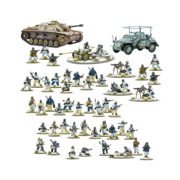 Cette armée de départ vous offre tout ce dont vous avez besoin pour aligner une force de Fallschirmjäger prêts au combat et équipés pour l’hiver pour des parties de Bolt Action. Au cœur de cette armée se trouve un solide peloton de fusiliers avec trois escouades complètes de parachutistes, soutenues par des équipes de tireurs d’élite et de Panzerschreck. Cette formation flexible est capable de prendre et de tenir des objectifs, et constitue le cœur de toute force de Bolt Action.