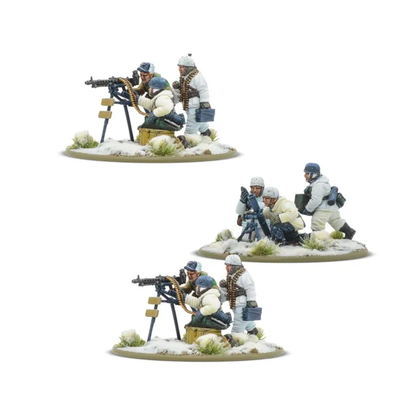 - Deux Fallschirmjäger (hiver) équipes de mitrailleuses moyennes (canon en métal avec équipage en Warlord Resin)