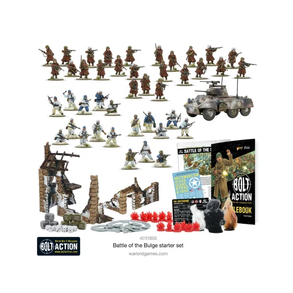 Le set de départ de la Bataille des Ardennes vous apporte tout ce dont vous avez besoin pour commencer à jouer à Bolt Action : Third Edition – assemblez simplement vos figurines et laissez la bataille commencer ! Une fois que vous aurez joué vos premières parties à l’aide du livret d’introduction inclus, vous pourrez commencer à agrandir votre collection et plonger tête la première dans le monde impressionnant des wargames de la Seconde Guerre mondiale !