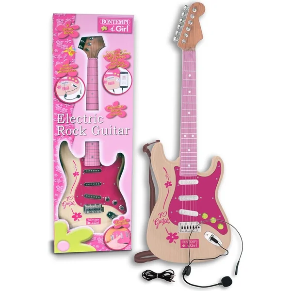 Bontempi Guitare électrique rock avec microphone 241317, fabricant Bontempi. Guitare de la série I Girl avec microphone et connexion pour appareil MP3.
