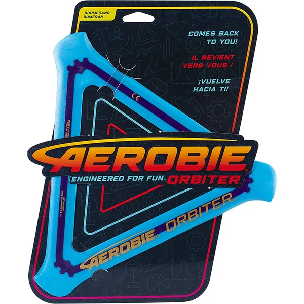 Le boomerang Aerobie ORBITER parcourt un circuit d’environ 28 m et revient. Il a une forme triangulaire unique avec des bords souples et flexibles, ce qui le rend facile et agréable à attraper. Grâce à ses couleurs vives, le boomerang Aerobie Orbiter est bien visible tout au long du vol. Les instructions pour lancer le boomerang se trouvent sur l’emballage ainsi que sur le boomerang lui-même. Ne désespérez pas si le boomerang ne revient pas tout de suite et ne vous découragez pas ! Le boomerang Aerobie Orbiter revient vraiment et c’est juste une question de pratique, éventuellement de vent et d’ajustement du boomerang. Le record de lancer et d’attraper le boomerang Aerobie Orbiter, sans qu’il ne tombe au sol, est détenu par José Drummond de Brasilia – un incroyable 720 lancers !