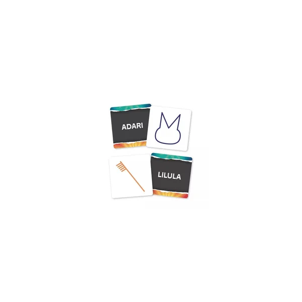 Dans Bouba/Kiki, les cartes affichent un mot inventé d’un côté et une illustration simple de l’autre. Dans le jeu de base, vous êtes confronté à un ensemble de trois mots et une forme, et devez décider quel mot correspond le mieux à la forme. Des points sont gagnés lorsque vous choisissez la même cible que vos coéquipiers.