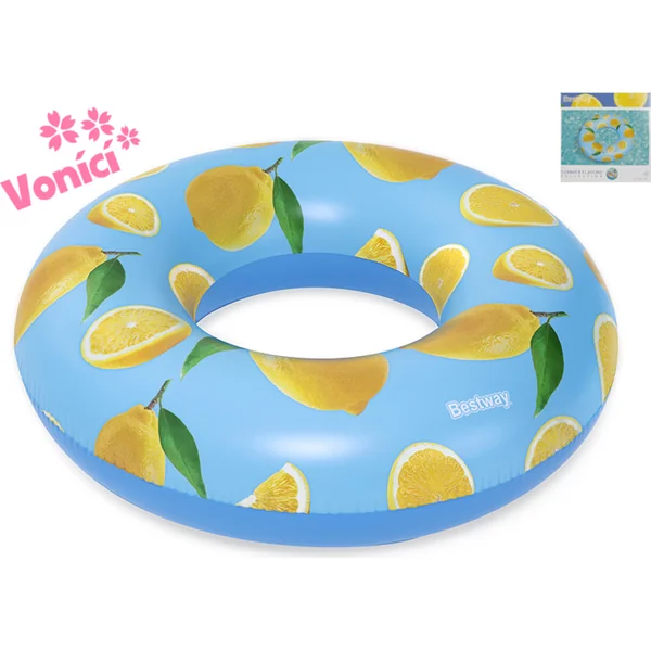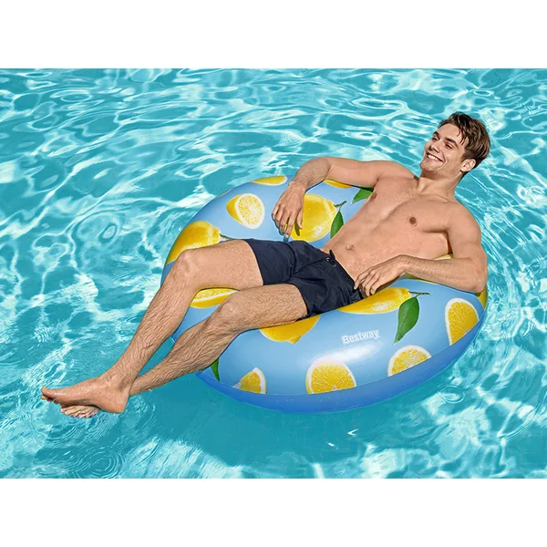 Grande roue colorée de la marque populaire Bestway est une proposition pour des folies estivales pour les amateurs de plaisirs aquatiques. La roue d’un diamètre de 119 cm est fabriquée en PVC durable. La valve de sécurité assure une utilisation confortable de la roue pendant les vacances d’été. La graphique joyeuse de la roue invite à se détendre à la surface de l’eau et l’impression de citrons sur fond bleu aura en plus fière allure sur les photos de vos vacances d’été. La roue de plage est légère et pratique. Elle ne prend pas beaucoup de place et ne nécessite pas de pompe pour être gonflée, ce qui vous permet de l’emporter partout. La roue gonflable est destinée à être utilisée uniquement dans l’eau, à une profondeur permettant à l’enfant de sentir le fond, sous la surveillance d’un parent.