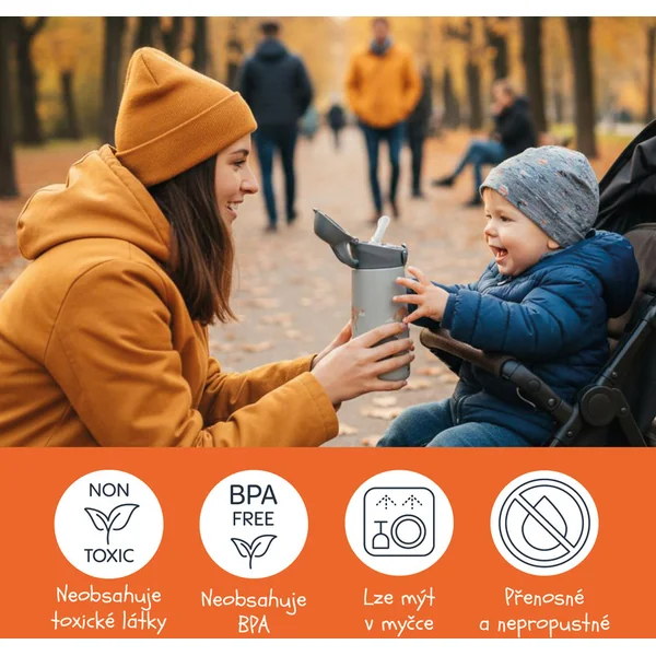 Boire facilement pour les enfants : Le bec en silicone souple et la paille favorisent l’autonomie lors de la boisson.