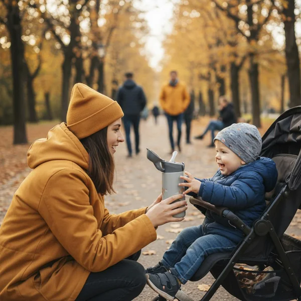 Contrôle d’une seule main : Le couvercle s’ouvre par un bouton, idéal pour les voyages ou la poussette.