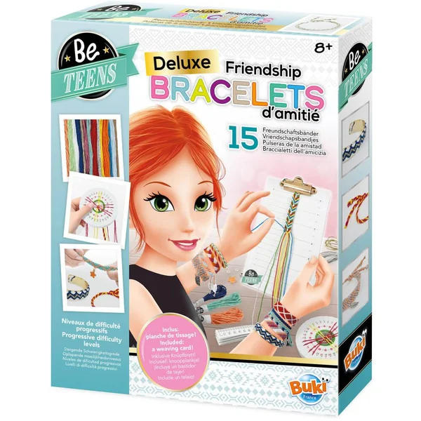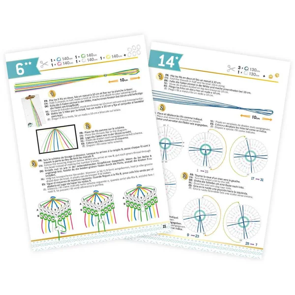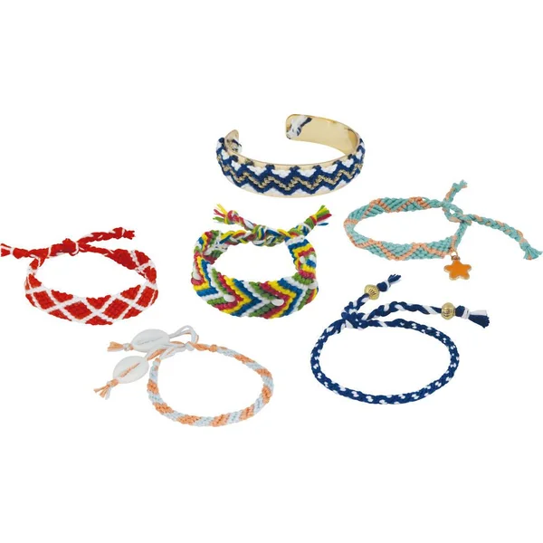 Crée 10 bracelets tendances avec des fils de coton, des perles et des breloques ! Utilise la roue en mousse ou la ventouse pour maintenir ton bracelet.