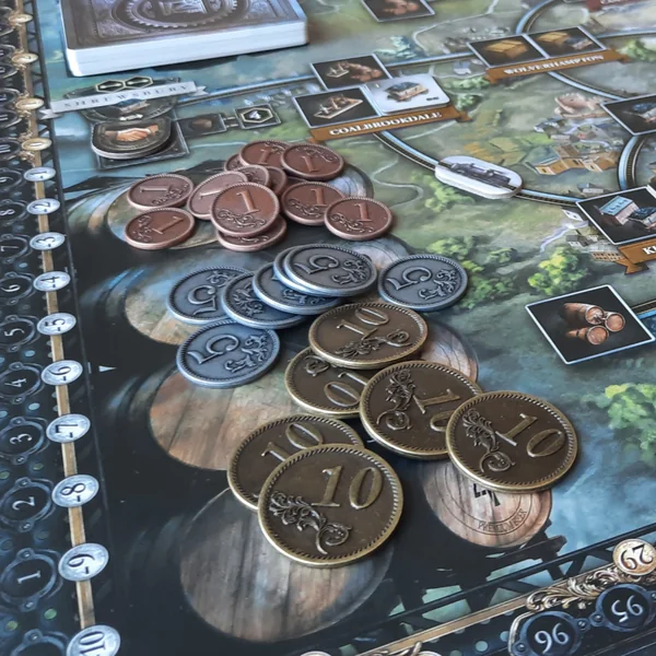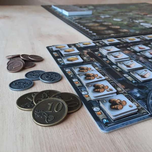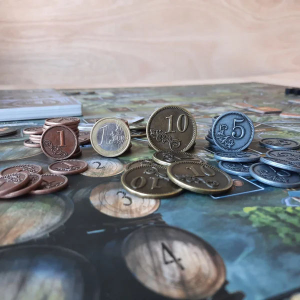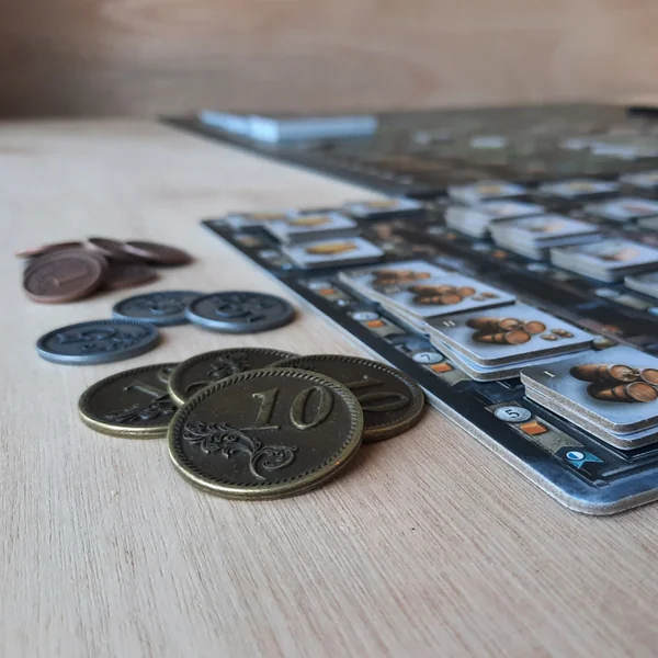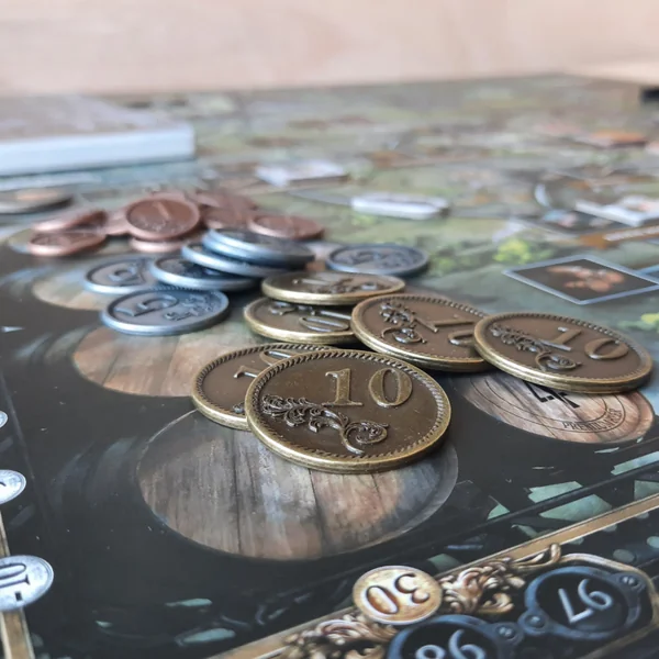 L’avantage des pièces en métal est qu’elles sont bien plus agréables à manipuler que des jetons en plastique ou en bois, elles sont également plus fidèles aux pièces utilisées dans la vie de tous les jours ce qui permet une meilleure immersion dans le jeu.