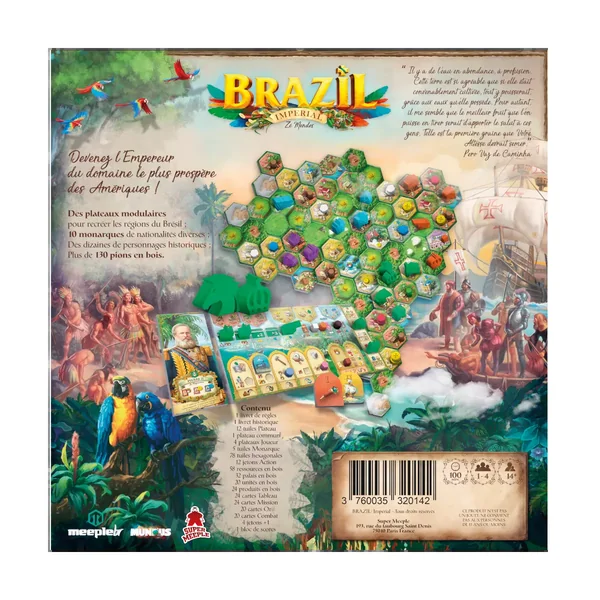 Brazil : Imperial a été développé avec le concept d’être «Euro X», un nouveau style de jeu qui combine les Eurogames (dans lesquels vous collectez et gérez des ressources) et les jeux 4x (dans lesquels vous explorez, étendez, exploitez et exterminez). À chaque partie, vous pouvez vous concentrer sur la gestion des ressources, le combat ou une combinaison des deux, en fonction de votre choix de monarque et des autres joueurs.