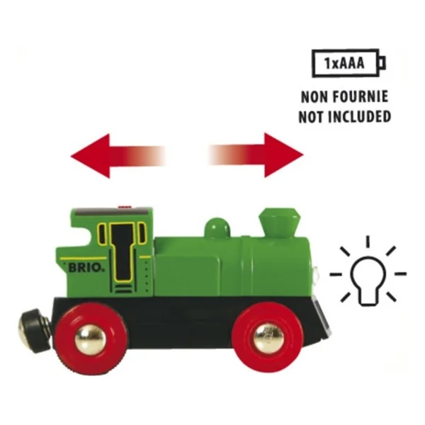 Locomotive électronique verte avec effet lumineux. Le train a de nouvelles couleurs, une nouvelle graphisme et un nouvel emballage. Ajoutez-le à votre collection pour votre circuit de train Brio.