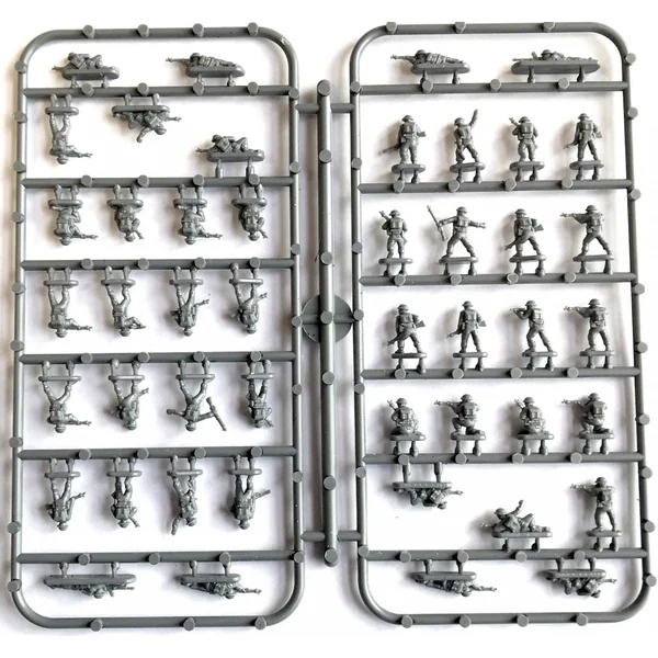 Vous pouvez déployer toute une compagnie d’infanterie dans un rapport de 1/1 avec chaque ensemble car ils contiennent suffisamment de fusiliers, de mitrailleuses légères, de mortiers, de mitrailleuses lourdes, d’armes antichars, d’opérateurs radio, d’officiers, de sergents et de porteurs de munitions. Ils sont autant que possible monoblocs, mais certaines armes, comme les mortiers et les mitrailleuses lourdes, se présentent sous la forme de pièces multiples faciles à assembler.