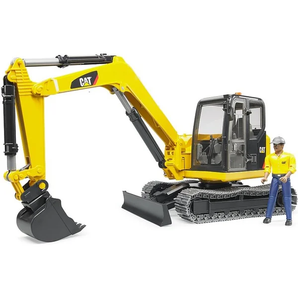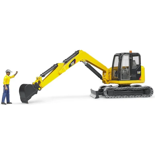 BRUDER 02466 Mini-pelle CATERPILLAR avec figurine, fabricant Bruder. Copie en plastique fidèle de l’équipement réel à l’échelle 1:16.