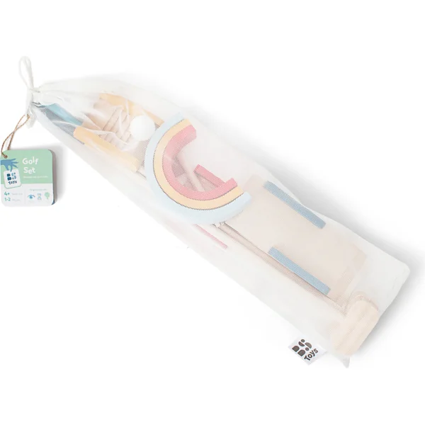 Contenu du jeu :2 clubs de golf 57 x 8 cm, 2 balles de 3,5 cm de diamètre, 7 obstacles