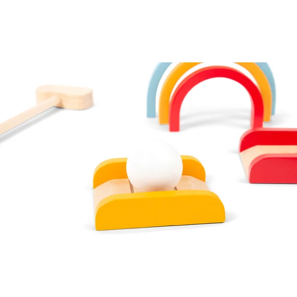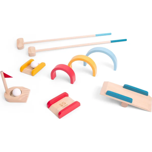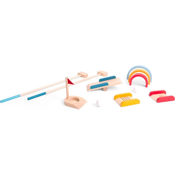 Minigolf pour 1-4 joueurs à partir de 4 ans.Amusez-vous avec vos amisavec cet ensemble de golf en bois. Un jeu idéal pour le jardin ou le parc. La mission de ce jeu est de permettre aux enfants de s’amuser sans smartphones ni tablettes.