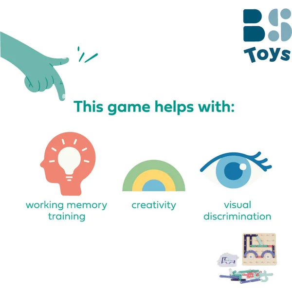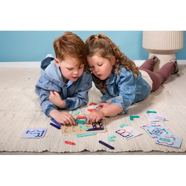 Ce jeu offre plus que du divertissement, il fournit également un développement significatif. Il développe la créativité, les enfants peuvent inventer leurs propres motifs ou copier ceux des cartes. Il améliore la capacité à percevoir les formes et les couleurs. Grâce à la manipulation de petits éléments, il développe la motricité fine.
