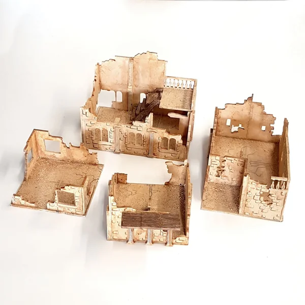 Chaque kit permet la construction d’un gros bâtiment, de deux moyens ou de quatre petits, les possibilités de variation sont donc très vastes (jusqu’à 12 petits bâtiments !). Vous pouvez également décider d’utiliser les kits pour construire un énorme bâtiment !Le carton est prêt à peindre, facile à coller ou à modifier.
