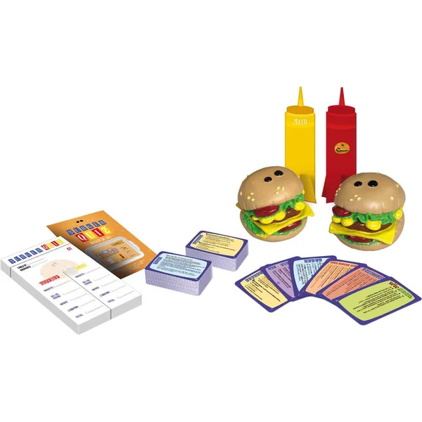 Tout comme dans TV burger quiz, ce jeu de société édité par Dujardin propose 4 épreuves amusantes, notamment : Nuggets, Sel ou Poivre, l’Addition, et le grand Burger de la Mort.