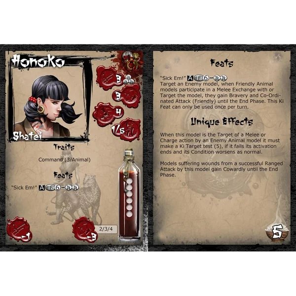 Si la formation de Sukuratchi est basée sur le fouet, Honoka conduit par la récompense. Cette belle shatei aurait été une Rose sans son amour des animaux. Elle est immédiatement capable de former une liaison avec même la plus sauvage et féroce des bêtes, en les soumettant à sa volonté. Sa meute donnerait sa vie en un instant pour leur chef de meute, tuant un ordre d’Honoka. Son préféré est sans aucun doute le léopard silencieux Hakashi, toujours à son côté, rarement aperçu.