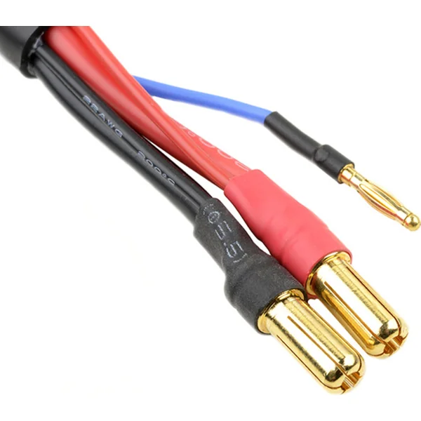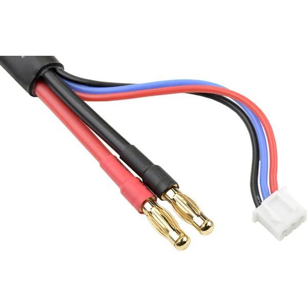 Câble de charge avec connecteur balaçant 3S XH et bananes 5mm avec broches pour batterie 5mm et broche 2mm, longueur du câble 30cm.