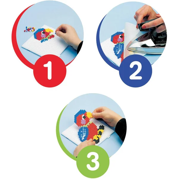 Un grand cadre pour aider votre enfant à reproduire facilement son model en perle Hama MAXI. L’utilisation est très simple : installez la feuille du modèle sur le cadre, puis la grande plaque transparente (ref. 8214). Ce support permet à votre enfant de suivre sereinement les couleurs du modèle choisit, sans risque de décalage. Les perles à repasser Hama sont très faciles à utiliser : 1) Poser les perles sur la plaque. 2) Couvrir le motif avec le papier à repasser puis repasser au fer très chaud sans vapeur. Le repassage est laissé aux soins des adultes. 3) Enlever le motif obtenu de la plaque de base qui est réutilisable.Les jeux Hama sont pensés pour le développement intellectuel et moteur des enfants. Au cours des premières années de vie, les petits apprennent à reconnaître les couleurs, à saisir les objets, à distinguer les formes, à avoir une première idée des quantités, etc. C’est en relation avec ces années d’apprentissage que les produits Hama montrent leur force en tant que jouets pédagogiques. Guidés par leurs parents, les enfants s’amuseront à prendre confiance en eux. Des activités qui développent le partage, la dextérité et qui stimulent la curiosité ! (Perles non fournies).