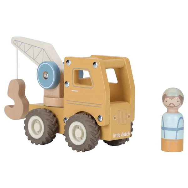Soulevez et déplacez des charges lourdes avec cette grue robuste en bois. Ce camion-grue est doté d’un bras rotatif et accompagné d’une figurine d’ouvrier. Ses roues en caoutchouc garantissent un déplacement fluide sur le chantier. Transportez-le jusqu’au port, chargez les conteneurs et placez-les à leur emplacement. À combiner avec d’autres véhicules de construction pour un jeu varié et prolongé. Que les travaux commencent !
