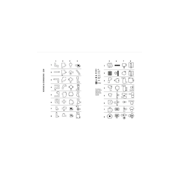 Ce carnet est bourré d’outils de création d’aventure et d’aide à la cartographie : tables, hexagones vierges, canevas en pointillés et morphes de donjons. Utilisez-le pour le jeu en solo ou en groupe, pour votre aventure Fallen, et au-delà pour n’importe quel jeu de rôle fantastique.