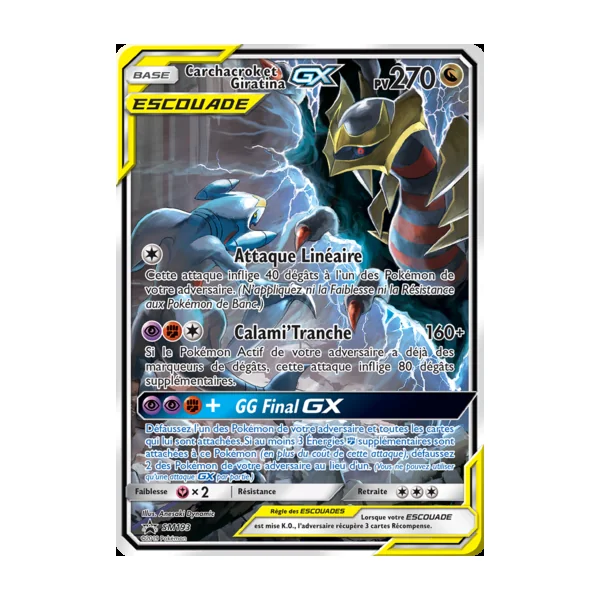 Découvrez Carchacrok & Giratina (sm193), une carte Pokémon de l’extension Promos Soleil & Lune, provenant du bloc Soleil & Lune. Idéale pour compléter votre collection, cette carte Promo plaira autant aux collectionneurs qu’aux joueurs.