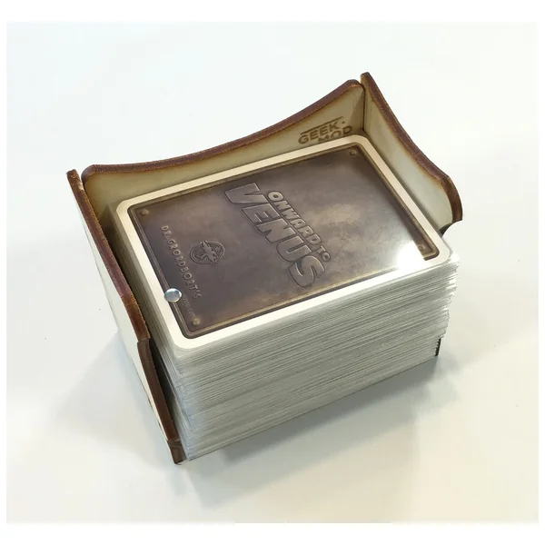 Un distributeur de cartes pouvant accueillir des cartes sous pochette jusqu’à un format maximum de 59x92mm. Grâce à lui, les grandes piles de cartes sous pochettes ne tombent pas sur la table. Le distributeur est réalisé en contreplaqué léger de la plus haute qualité. Avec les instructions fournies, il est facile à assembler et nécessite de la colle (nous recommandons Wikol, Magic ou autre colle pour bois).