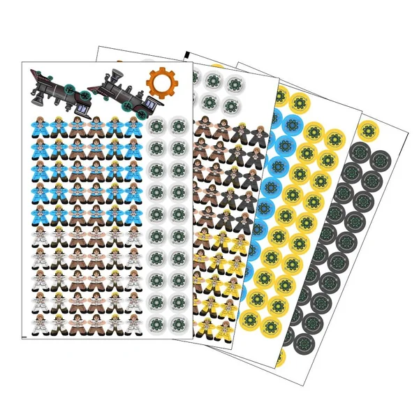 Découvrez ce tout nouveau set d’autocollants que nous avons créé chez MeepleStickers, exclusivement pour le jeu de société Carnegie. Grâce à ces autocollants durables, colorés et de haute qualité, vous pouvez personnaliser vos meeples en bois pour les rendre uniques et améliorer votre immersion dans le jeu. Faciles à utiliser – il suffit de décoller et de coller – et vous verrez la différence immédiatement.