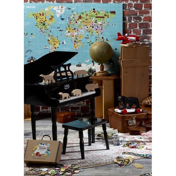 Joseph Kessel écrivait « Les grands voyages ont ceci de merveilleux que leur enchantement commence avant le départ même, On ouvre les atlas, on rêve sur les cartes. On répète les noms magnifiques des villes inconnues » C’est aussi avec talent et poésie qu’Ingela P. Arrhenius a dessiné cette très belle carte magnétique en bois pour que l’apprentissage de la géographie soit une invitation au voyage… Contenu : 86 magnets en bois et 1 grand fond magnétique illustré.
