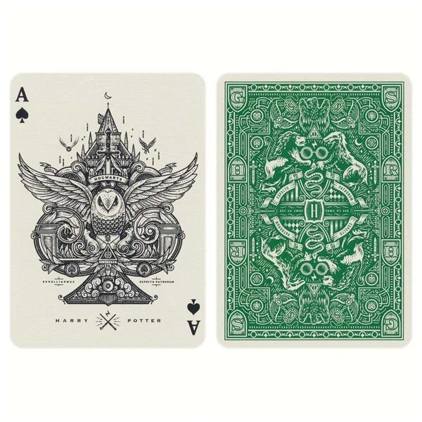 Les cartes Harry Potter présentent des illustrations entièrement personnalisées dans tous les aspects. Les As, les Jokers, le design de la boîte et les cartes de courtoisie sont directement inspirés des personnages et des événements préférés des fans du monde des sorciers.