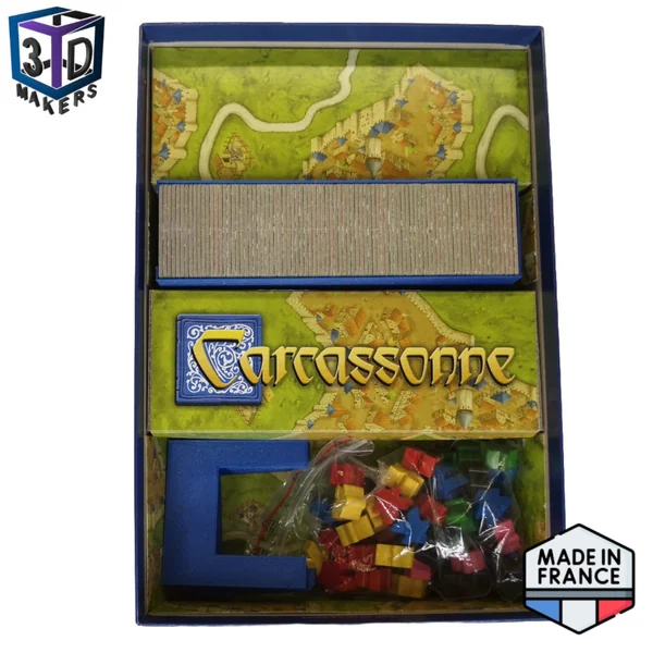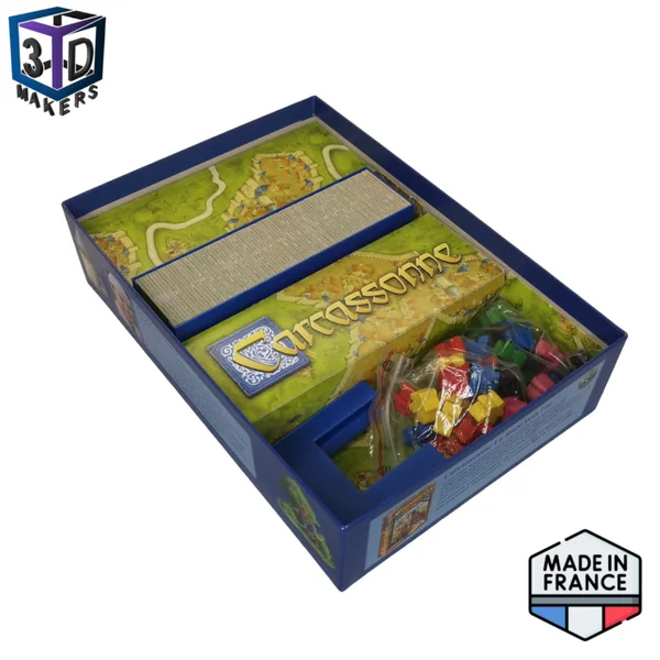 Cartouche pouvant contenir les 84 tuiles de la boite de base du jeu Carcassonne avec la rivière.