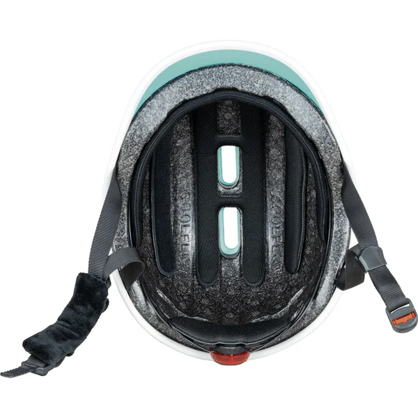 La construction du casque se compose d’une coque extérieure en ABS très résistante et d’un rembourrage intérieur en mousse EPS, ce qui garantit une absorption maximale des chocs et une couverture complète de la tête. Le confort est assuré par des coussinets intérieurs de 7 mm d’épaisseur et un protège-menton doux de 2 mm qui prévient les irritations de la peau pendant le port. Des ouvertures de ventilation intégrées assurent un refroidissement efficace et une circulation de l’air. Pour une visibilité accrue, un feu LED à 6 diodes est placé à l’arrière avec trois modes d’éclairage (lumière constante, clignotement, clignotement rapide).