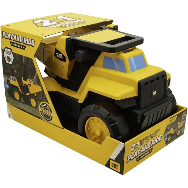 Le camion avec benne en acier 2 EN 1 qui se transforme en véhicule trotteur. Fais glisser le toit du camion en arrière, soulève la poignée et ton camion devient un trotteur ! Véhicule roues libres, non motorisé. Les effets sonores et lumineux quand tu tournes la poigné pour un véhicule plus vrai que nature !