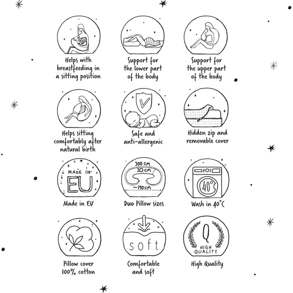 Cebuška DUO – coussin multifonctionnel est destiné aux mamans les plus exigeantes du monde. C’est le plus grand coussin pour femmes enceintes et mères allaitantes. Son innovation réside dans sa construction en deux parties et l’utilisation de deux rembourrages différents.