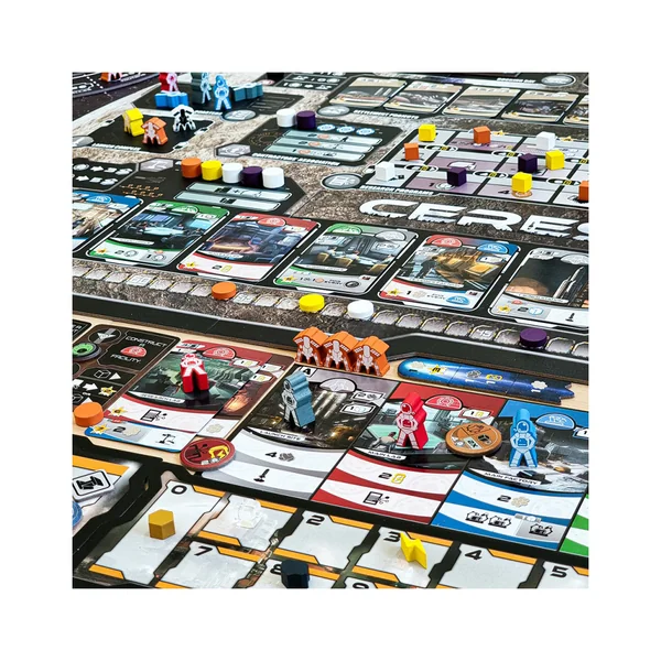 Ceres est un jeu de placement d’ouvriers de science-fiction dans lequel les joueurs jouent le rôle d’une société minière d’astéroïdes dans un futur proche et tentent de surpasser leurs adversaires et de gouverner Cérès ! Le jeu se compose de 3 tours qui représentent 3 ans à Cérès et les cycles économiques complets respectifs des sociétés.