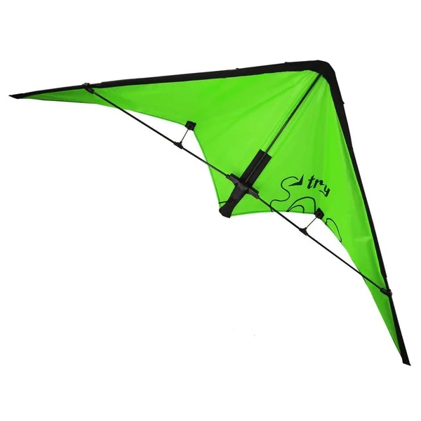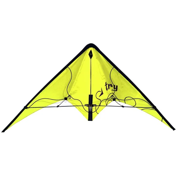 Cerf-volant d’acrobaties ‘try’ 115 cm prêt à voler. 4 coloris assortis : jaune, rouge, rose et vert. Système pop-up breveté. Envergure 115 cm. Avec le système pop-up, le cerf-volant est assemblé en quelques secondes. Il suffit de l’ouvrir comme un parapluie (système avec une connexion par clip) et de raccorder le fil pour qu’il soit prêt à voler. Voile en polyester résistant. Armature solide en fibre de verre. Avec deux poignées pour un contrôle total. Deux lignes de connexion par clip incluses. Idéal pour les débutants en acrobaties. Pour vents : de 15 à 25 km/h. L’emballage du produit peut être réutilisé pour ranger le cerf-volant : en vinyle, dimensions 16.5 x 85 cm.
