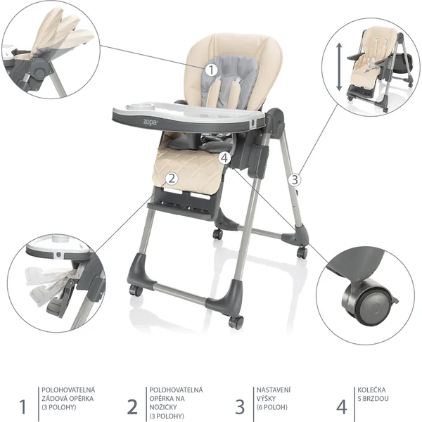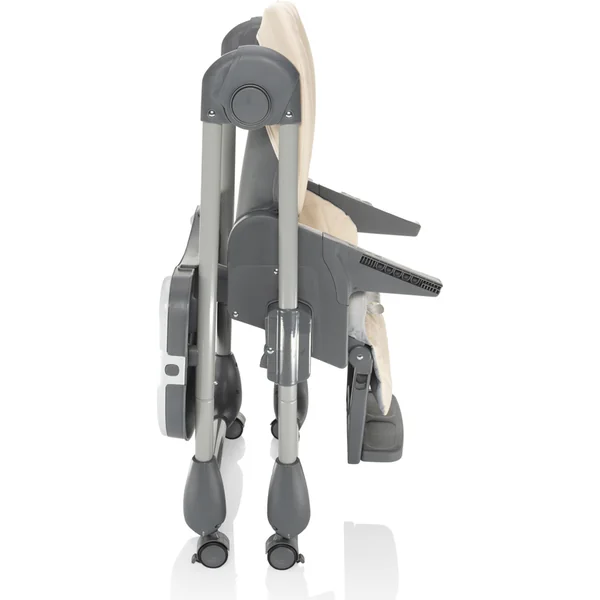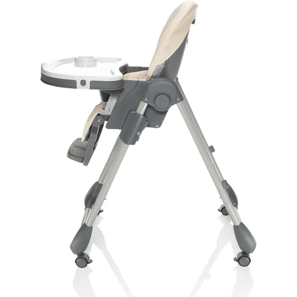 La chaise haute Monti 2 peut être facilement pliée et, grâce à ses dimensions compactes une fois pliée, elle ne prendra pas beaucoup de place. De plus, elle est équipée de roues avec frein pour une manipulation et un déplacement faciles. Pour une manipulation aisée, la tablette peut être accrochée à la chaise, de sorte qu’elle ne gêne pas lorsqu’elle n’est pas utilisée.