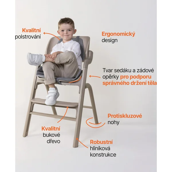 La chaise haute élégante Zopa Inspira grandit avec votre enfant, des premières purées jusqu’aux années scolaires. Son design stylé, ses éléments de sécurité bien pensés et sa haute capacité de charge en font un partenaire fiable pour chaque table familiale.