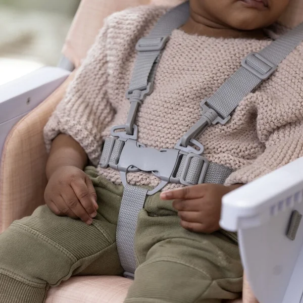 • Ceintures de sécurité : Les ceintures de sécurité à 5 points assurent la sécurité de l’enfant pendant l’utilisation de la chaise.