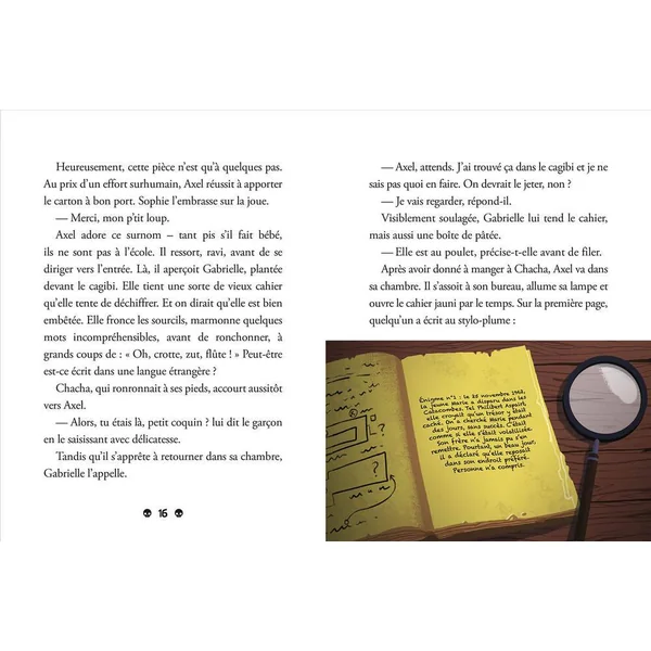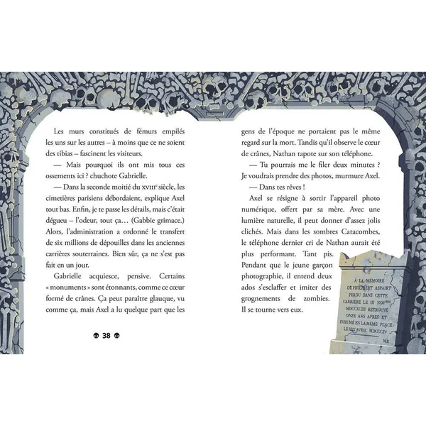 C’est le grand jour ! La mère de Gabrielle et le père d’Axel emménagent ensemble. Pas facile de se retrouver dans une famille recomposée. Mais en rangeant le nouvel appartement, ils découvrent un carnet rempli d’énigmes… dont une étrange disparition dans les Catacombes de Paris.