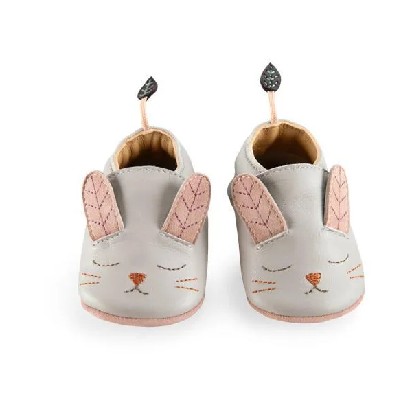 Chaussons lapin 12/18m en cuir souple, avec fermeture à scratch, à la forme large et arrondie adaptée aux pieds en pleine croissance. Doublés, ils disposent d’une semelle en cuir velours antidérapante et d’une semelle intérieure amovible avec mousse.
