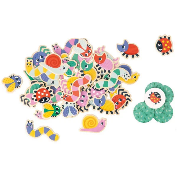 Leur objectif : retrouver l’insecte présent sur leur carte parmi tous ceux présents devant eux. Ce jeu éducatif en bois se compose de : 42 insectes (7 chenilles, 7 coccinelles, 7 escargots, 7 scarabées, 7 araignées et 7 mouches), 42 cartes rondes en carton, et 1 sac en coton très pratique pour ranger et transporter facilement le jeu !