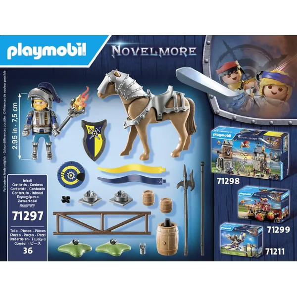 Avec un personnage, un cheval et des accessoires. Aire de joute classique des chevaliers. 36 PIECES-