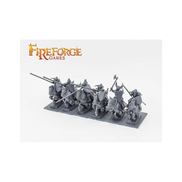 Les chevaux sont bardés et les cavaliers peuvent être montés avec plusieurs choix d’armes, de têtes et d’accessoires.