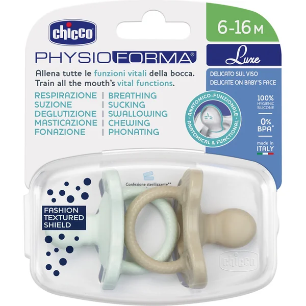 CHICCO Sucette Physio Luxe vert/gris 6-16m, 2pcs